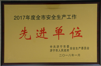 辰欣藥業榮獲“濟寧市2017年度安全生產工作先進單位”